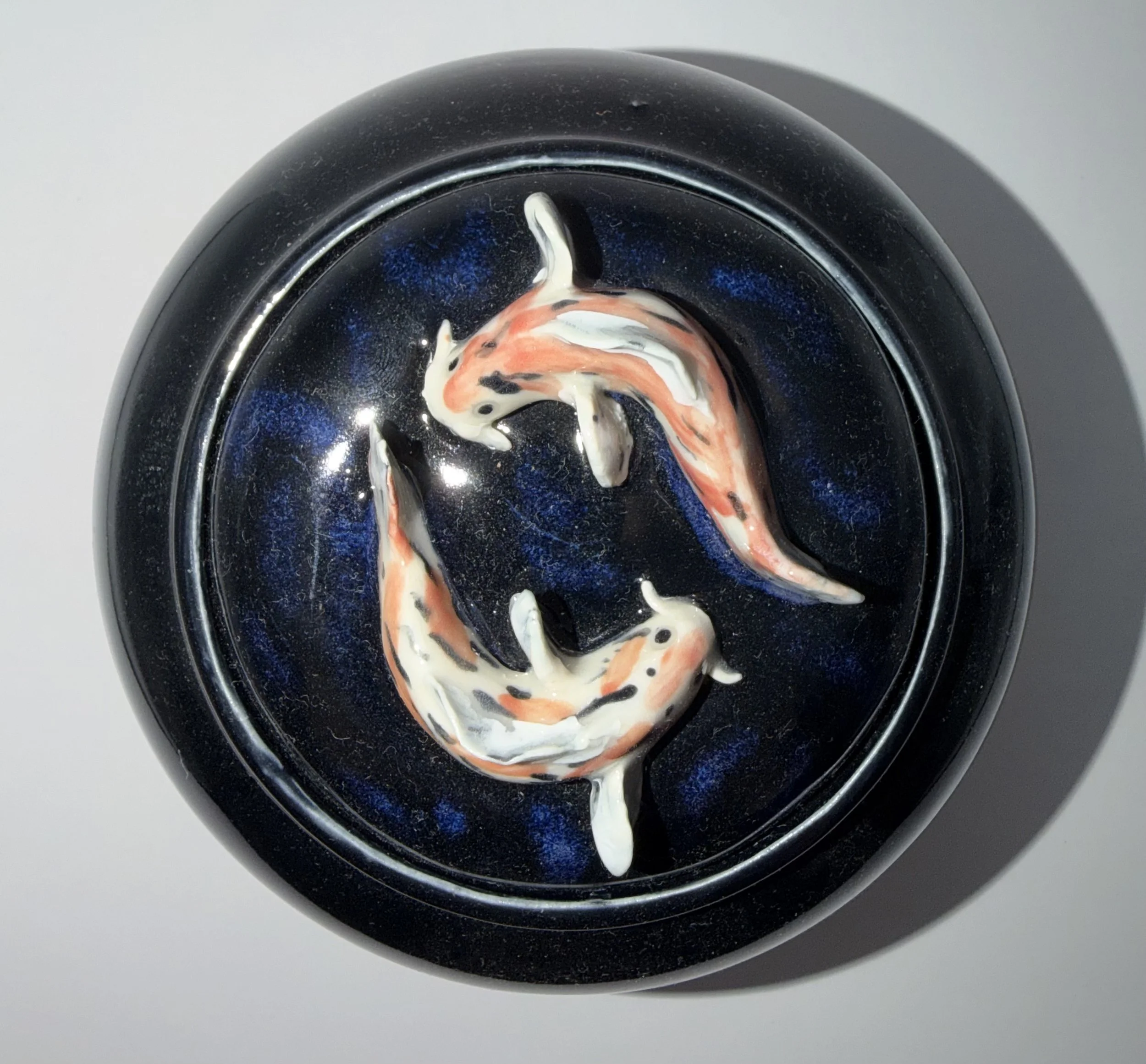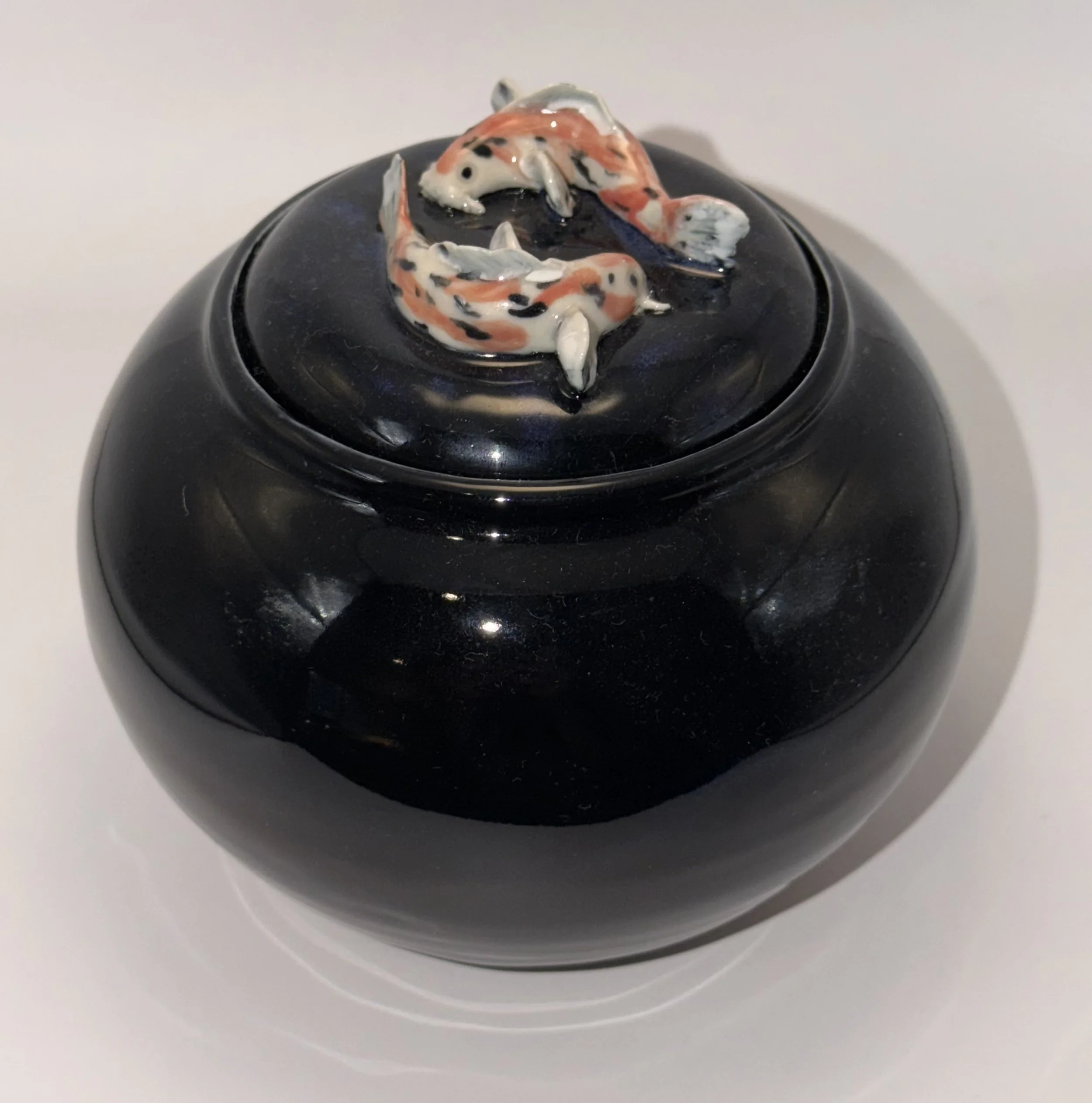My little Koi Fish pot. Not the most ergonomic solution for the lid, but SO worth the inconvenience.