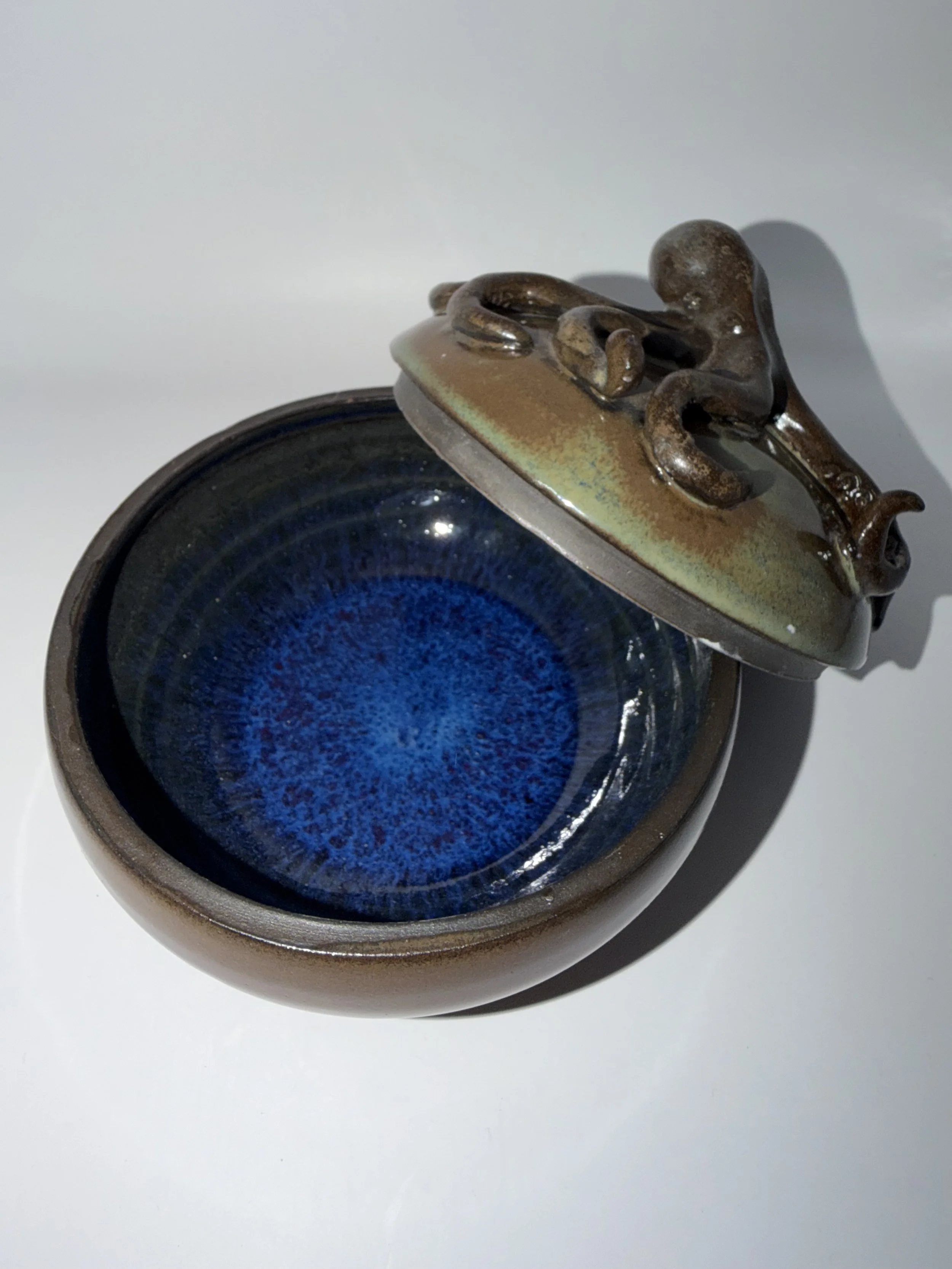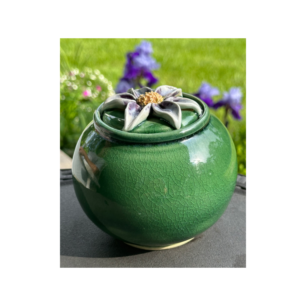 This is my first lidded pot with a designed top. Very happy with the flower!